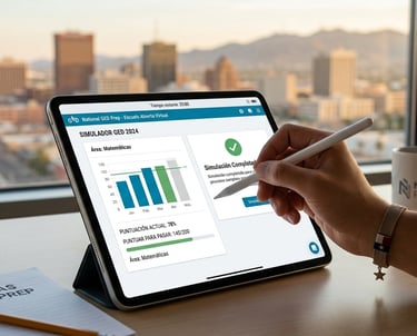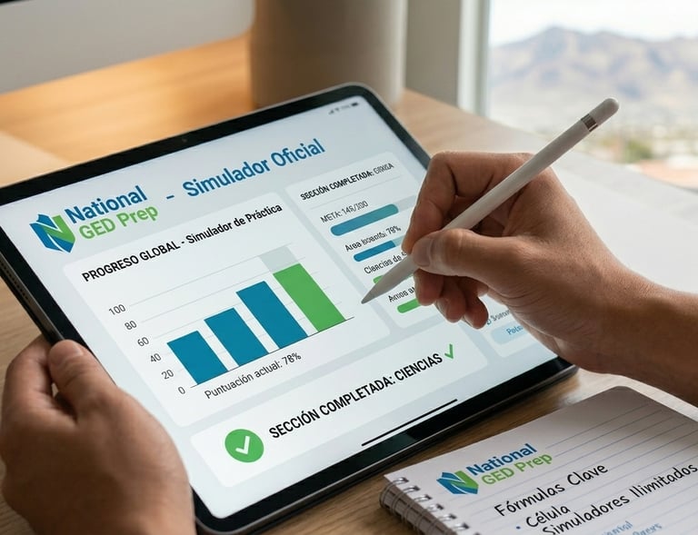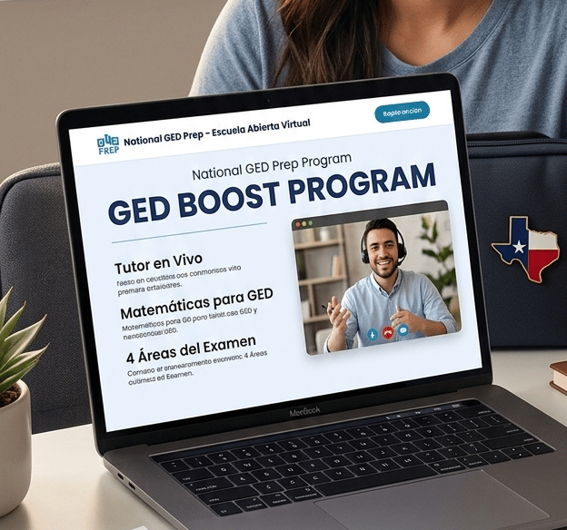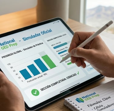 GED® es una marca registrada del American Council on Education (ACE) y es administrada por GED Testing Service LLC. National GED Prep LLC es una entidad independiente de tutoría y preparación; no está afiliada, respaldada ni aprobada por ACE o GED Testing Service. El diploma oficial de equivalencia de secundaria es otorgado exclusivamente por la autoridad educativa estatal correspondiente tras aprobar los exámenes oficiales.